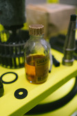 The artist, photographer and architect Martin Maleschka has set himself the task of documenting the cultural heritage of the GDR. Parts of it are also preserved in garages: a self-made roof rack, a stack of "Die neue Fußballwoche" from 1984 or a bottle of brake fluid made in Karl-Marx-Stadt - all everyday objects that the artist borrowed from garage users in Chemnitz for his installation. Maleschka had rearranged these artefacts in the disused vehicle lift of the historic high-rise garage of the Museum of Saxon Vehicles. The spatial installation reflected the material culture of the GDR and made it possible to experience the garage as a living archive.