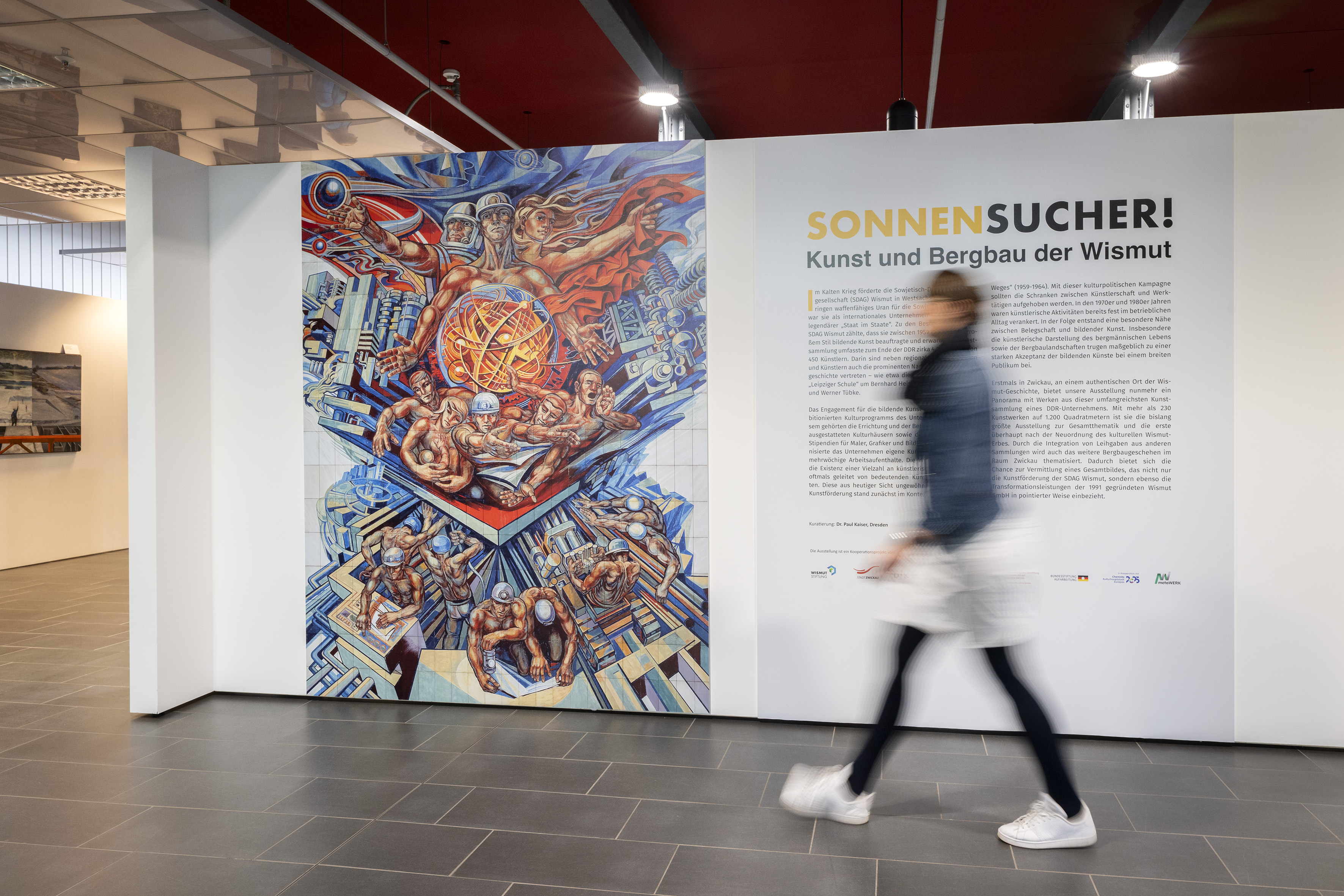 The design of the exhibition combines classic exhibit presentation with audiovisual media to give visitors access not only to the art, but also to the historical and social context. The result is an overall picture that shows the importance of Wismut both as an industrial company and as a cultural player in the GDR - and at the same time incorporates developments after 1990.