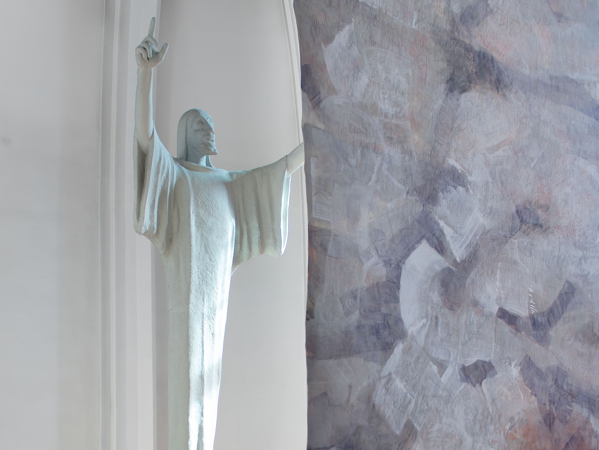 Sabine Herrmann created the large-format work "Witnesses without text" for the apse of the St John Nepomuk Catholic Provost's Church on Chemnitz's Kaßberg. Michael Morgner's expansive work "Ecce Homo - Siehe, der Mensch!", created for this purpose, covers the 1560 altar retable in St Mary's Cathedral in Freiberg. The Passion series is curated by DAS KOLLEKTIV Herrmann Killisch Rheinfurth.