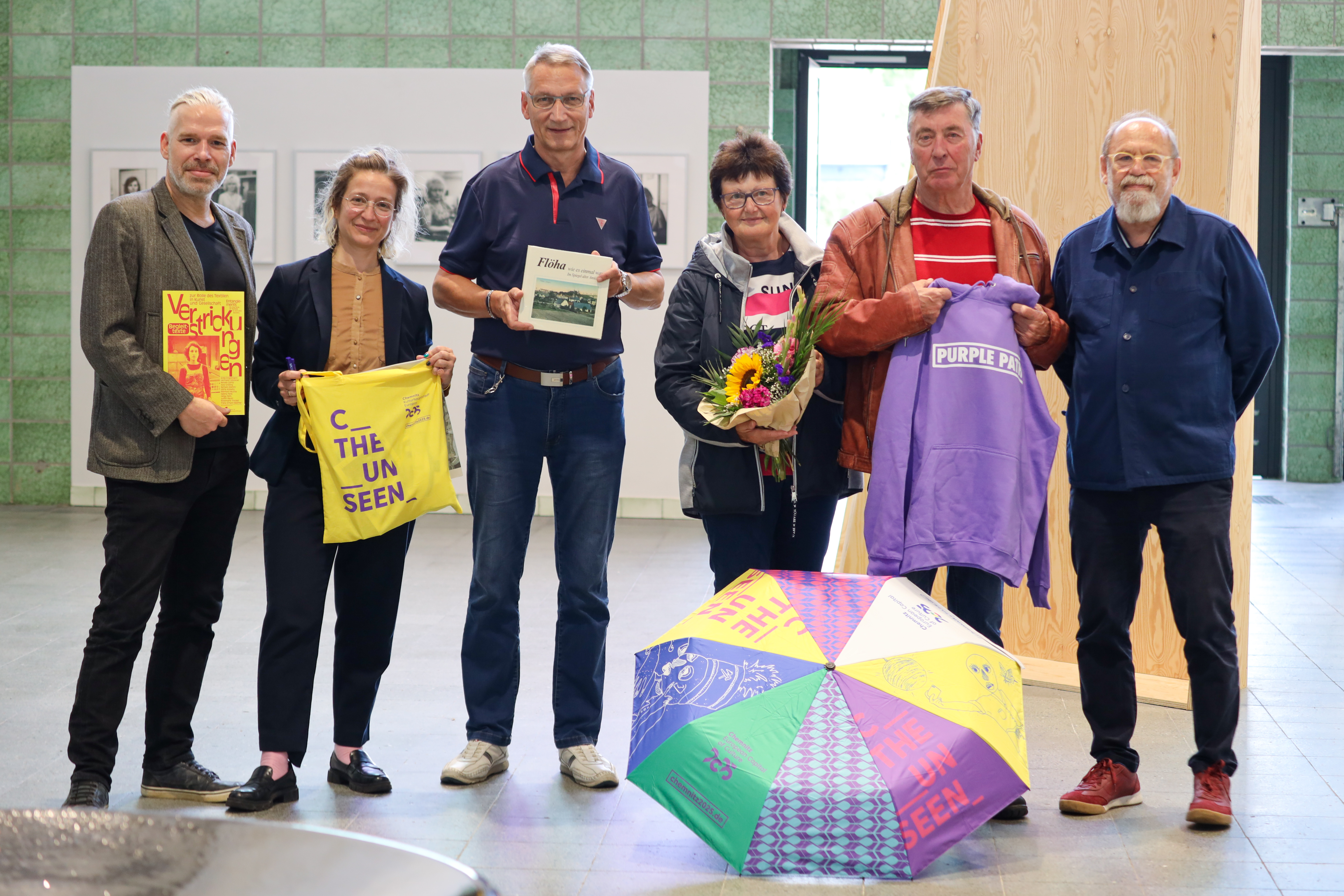 On Wednesday, 16 July 2025 at around 3 p.m., Brigitte and Werner Sieber from Augustusburg were welcomed to the Flöha Art Station as 12,000 visitors to the "Entanglements" exhibition by the Institute for Foreign Cultural Relations (ifa) as part of the PURPLE PATH art and sculpture trail of the European Capital of Culture 2025. They were welcomed by PURPLE PATH curator Alexander Ochs and production manager Julianne-Ingrid Csapo as well as Flöha's mayor Volker Holuscha and cultural employee Holger Diehnelt.