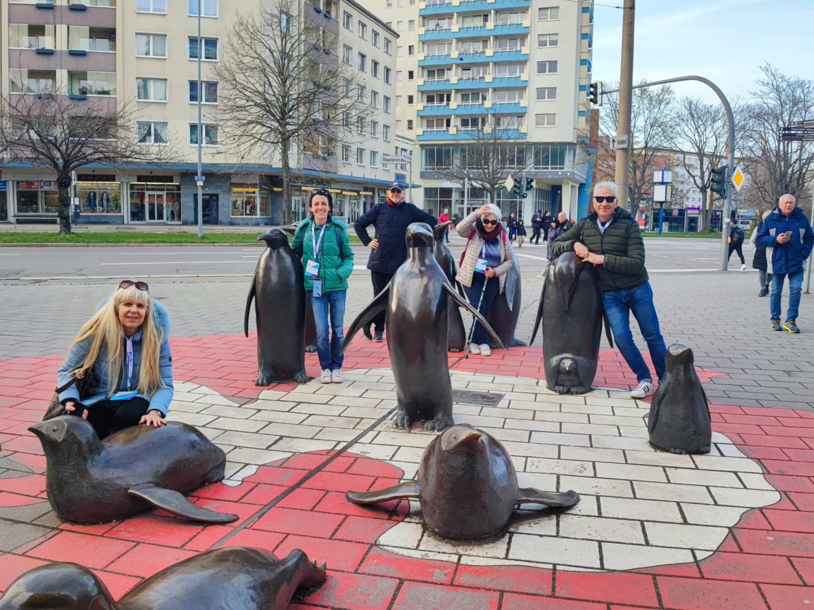 One of the guests' big wishes was to visit the penguins, a group of penguin sculptures in Innere Klosterstraße, which they had already heard about. We were happy to fulfil their wish. From there we went on to the Karl Marx Monument.