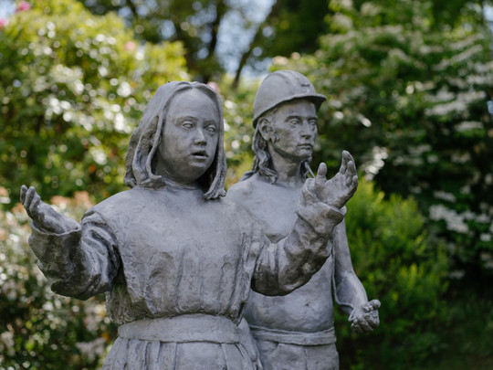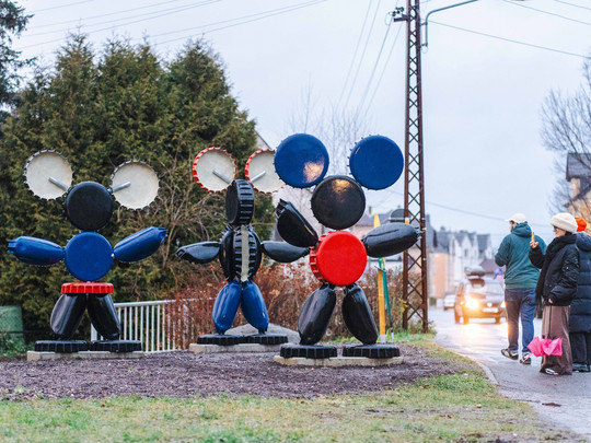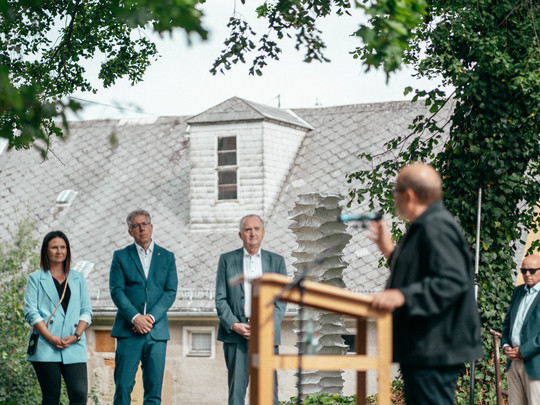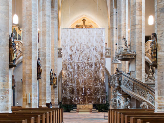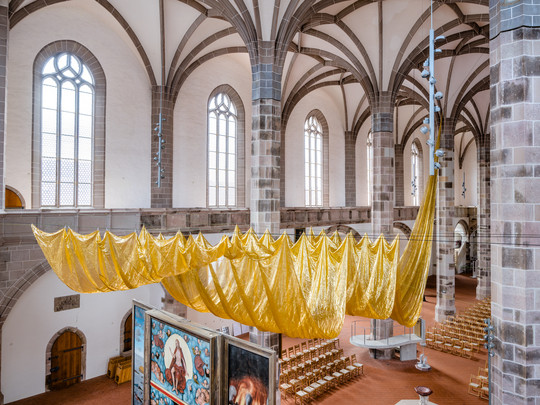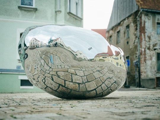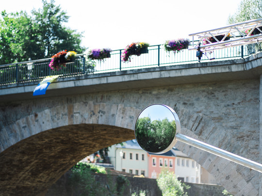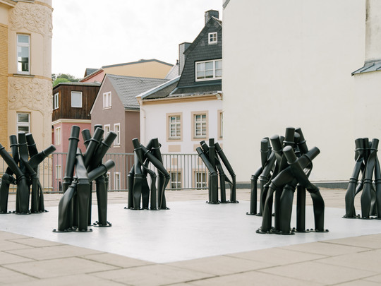 Works by more than 60 artists can be found on industrial wastelands, at railway stations, on riverbanks or in the still waters of a millrace. They correspond with farm and textile museums, connect with castles and old churches, their organs and their art. Sometimes they also take place in illustrious nooks and crannies of UNESCO-protected old towns, which become context providers and polyphonic narrators of the history mentioned.