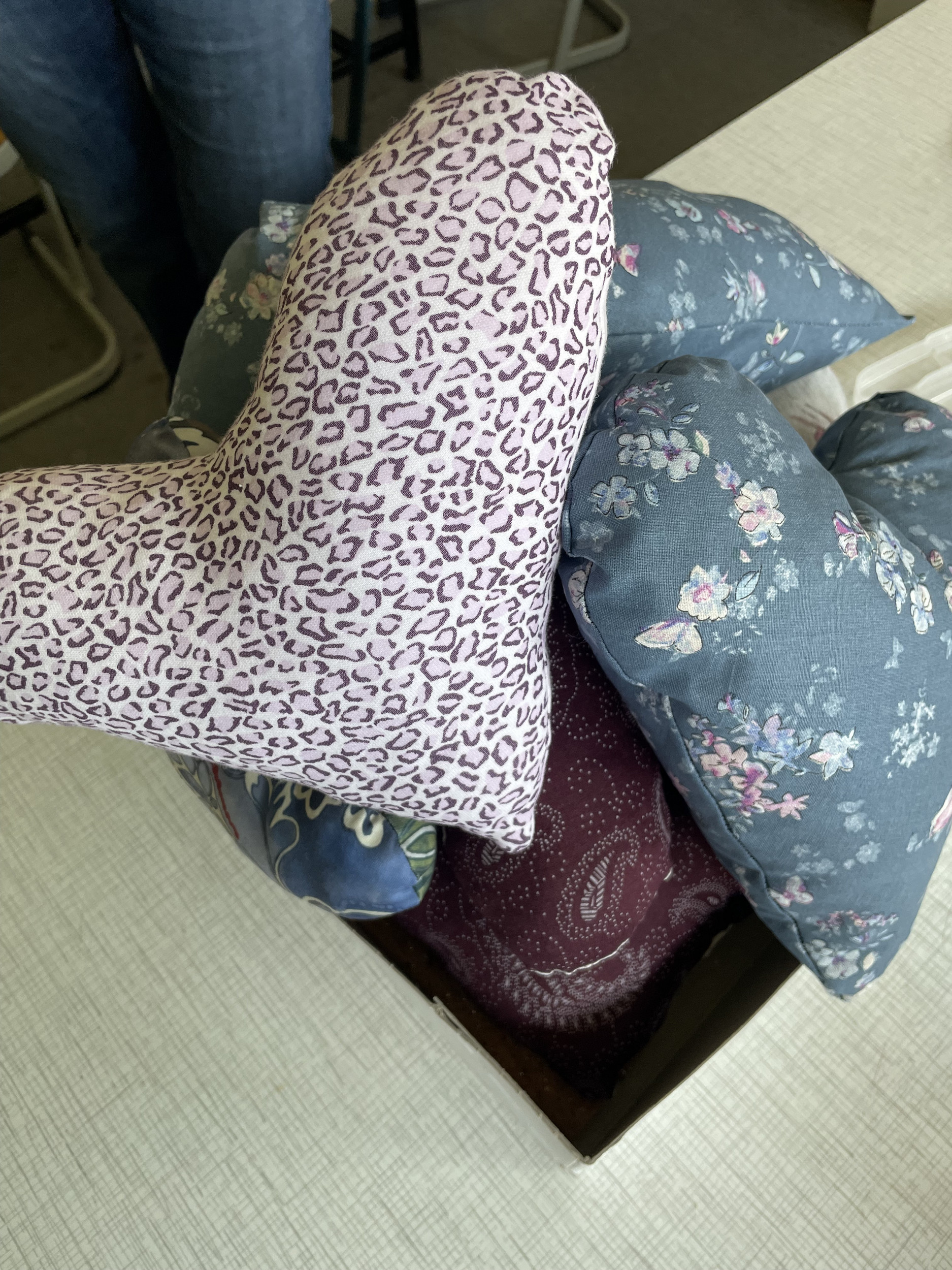 Um das Projekt umsetzen zu können, benötigt es viele fleißige Hände, die den Stoff zu Herzformen zusammennähen, dann mit Füllwatte bestücken und zum Schluss noch eine letzte schließende Naht nähen. Das Projekt wird in Kooperation mit der Volkssolidarität Chemnitz, den erfahrenen Frauen des Nähzirkels in der Montessori-Schule sowie dem Freiwilligenprojekt der Kulturhauptstadt und damit uns Freiwilligen umgesetzt.
