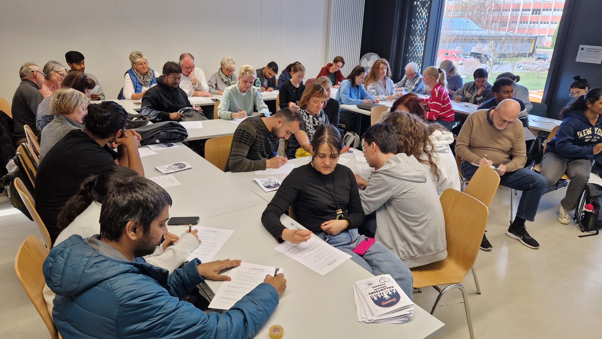 Im Anschluss wurde ein eigens entwickelter Fragebogen ausgegeben, der nicht nur als Reflexionsinstrument diente, sondern auch als Grundlage für die spätere Tandem-Zuteilung verwendet wurde. Die Studierenden & Freiwillige der Kulturhauptstadt Chemnitz 2025 machten darin Angaben zu ihren Sprachkenntnissen, Lernzielen, Hobbys und kulturellen Interessen – mit dem Ziel, möglichst passende Tandem-Partner:innen zu finden.
