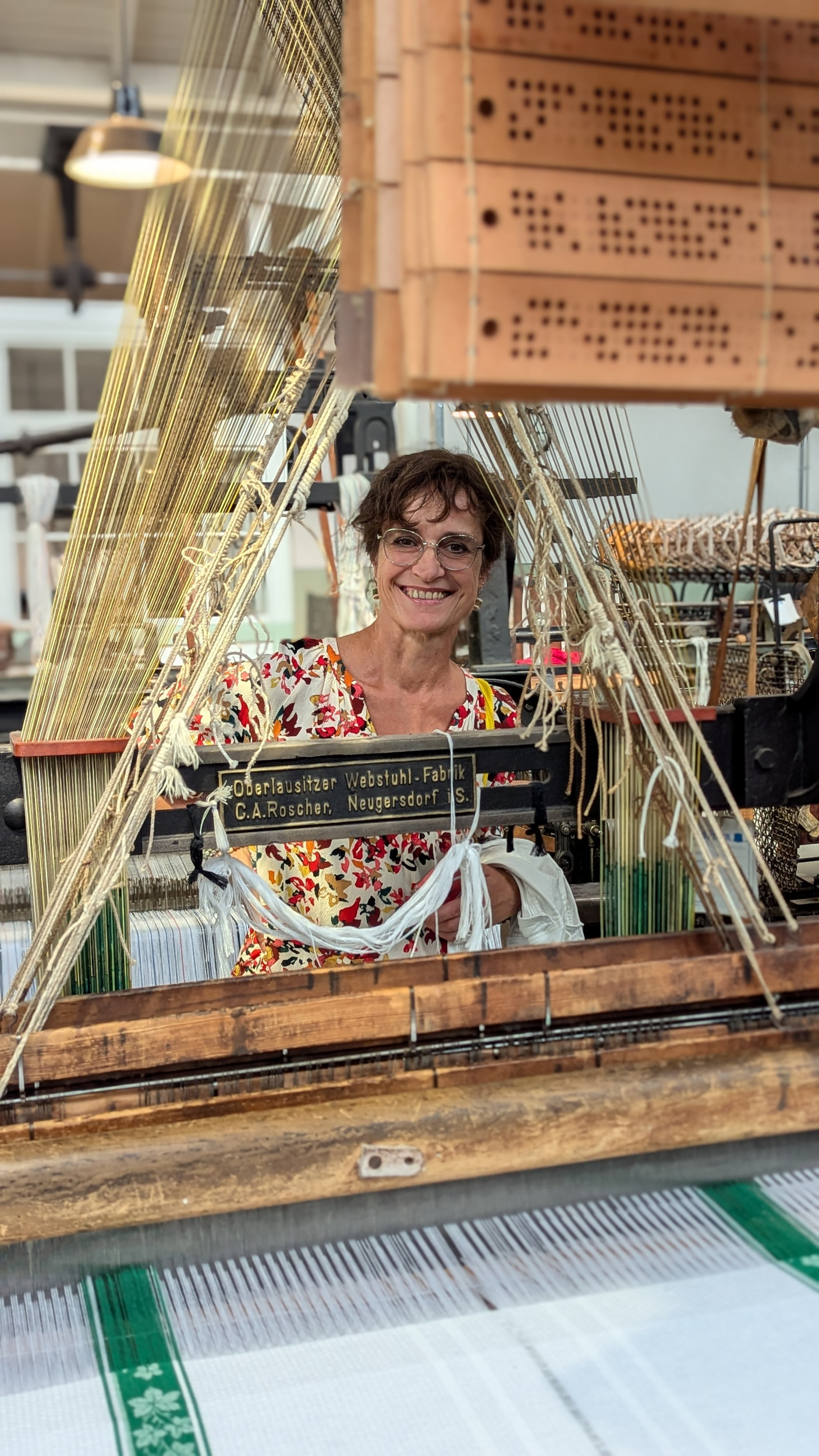 Das Hauptprojekt Makers, Business & Arts war drei Tage lang unterwegs im Zeichen textiler Zukunft mit den Makerhub-Partner:innen vom Esche-Museum in Limbach-Oberfrohna, dem Sächsischen Textilforschungsinstitut, der Textilwerkstatt vom Makerhub Lehngericht Augustusburg, der Künstlerin Katharina Jebsen und der Historischen Schauweberei in Braunsdorf.
