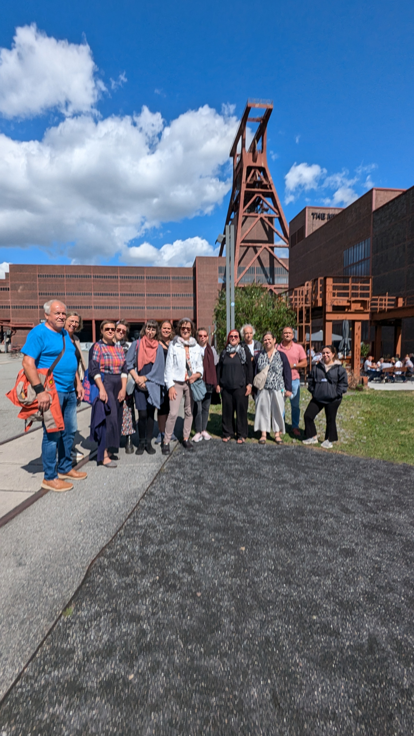 Im Atelier von Moniquenwerk tauchte die Gruppe in die Feinheiten der Stickereikunst ein. Stickerei ist dank Monique von Munster in den Niederlanden seit 2023 immaterielles Kulturerbe. In Workshops und auf der Community-Platform Patreon vermittelt sie mehr als 20 Stickereitechniken und gestaltet auch für den Haute Couture Szene. Dank eines Programm zur kulturellen Bildung kann sie ihr Wissen künftig auch an die junge Generation weitergeben und wird zahlreiche Kurse mit Schüler:innen umsetzen. Zum Finale auf dem Rückweg noch ein Stopp an einem Ort, der herausragend für Transformation steht und an dem 2010 das Kulturhauptstadtjahr eröffnet wurde: Zeche Zollverein.