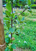 Am 09. Juli, genau 100 Tage später, schaute ich aus dem Fenster und hatte ein Déjà-vu: Es regnete, der Himmel war grau und man wollte eigentlich gar nicht aus den Federn. Aber je näher der Zeitpunkt des Beginns heranrückte, desto besser wurde es. Am Ende regnete es während der gesamten Zeit nicht. Dafür war aber allerhand los: Radio T sorgte für die Musik, die Leute vom Projekt hatten für Verpflegung gesorgt (Apfelchips, Apfelkuchen, Apfelsaft kalt und warm, Apfelstückchen zum Knabbern), aber auch für etwas Bequemlichkeit (Sonnenliegen, Biertisch-Garnituren) – man fühlte sich sofort wohl. Dazu trugen auch die interessanten Informationen und Gespräche bei. Mein ganz besonderer Dank geht an Herrn Amme, einem Apfel-Fachmann, der mir sehr geduldig sämtliche Fragen zu Äpfeln und Apfelbäumen beantwortete und für alle einen sehr interessanten Rundgang übers Gelände veranstaltete.