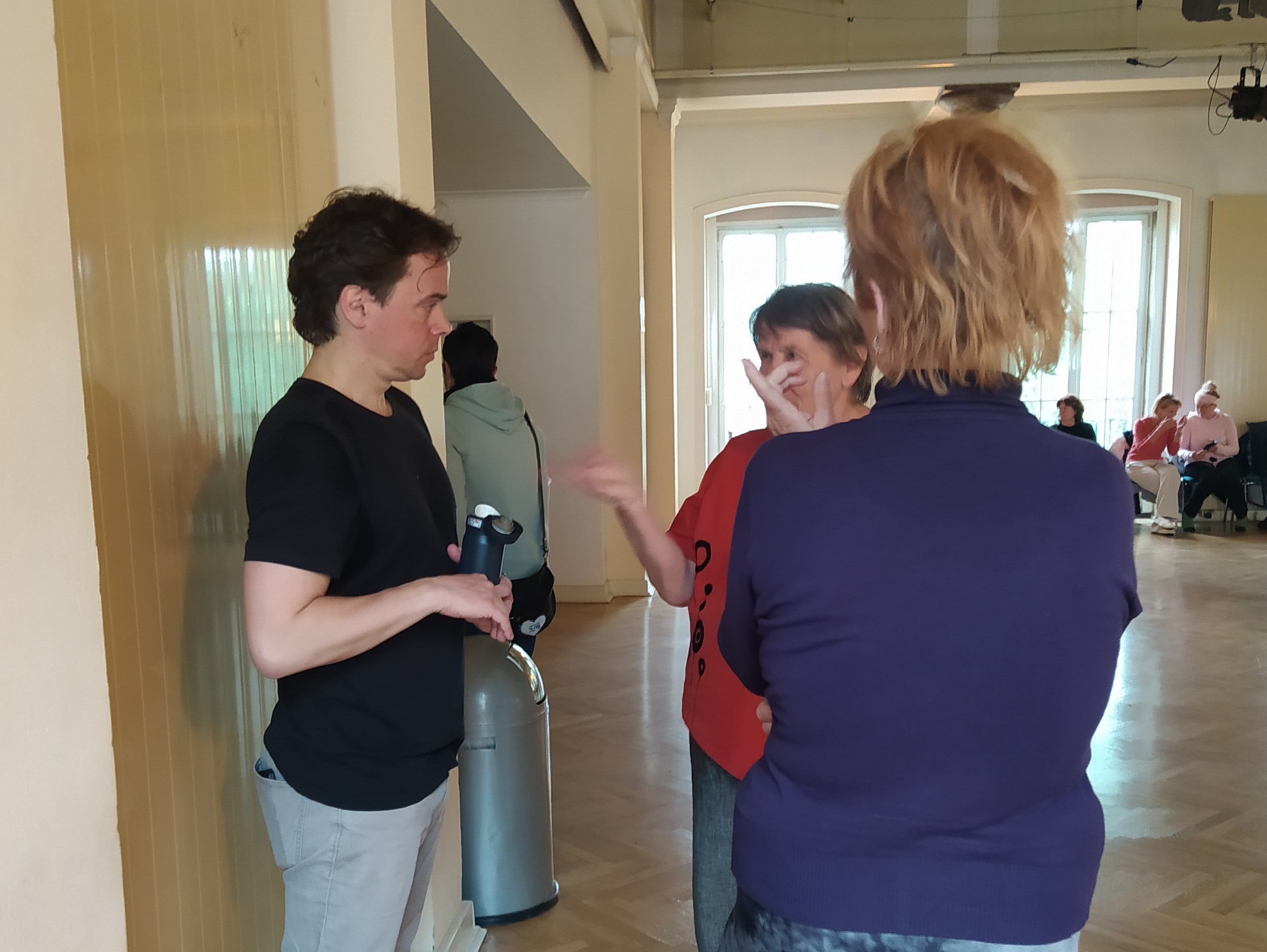 Wer hatte wohl größere Erwartungen an das erste Treffen „Tanzende Nachbarn“ am 7. Mai 2024? Waren es, die in Übungskleidung erschienen, ca. 30 Frauen und 2 Männer – alle Ü60? War es der in Vertretung der eigentlichen Leiterin des Projekts „Tanzende Nachbarn“ Tanzpädagogin Terry Pedersen Pfeiffer erschienene Projektmanager der Kulturhauptstadt gGmbH Michal Sandor oder Frau Dr. Takats, Leiterin des Teams Generationen?