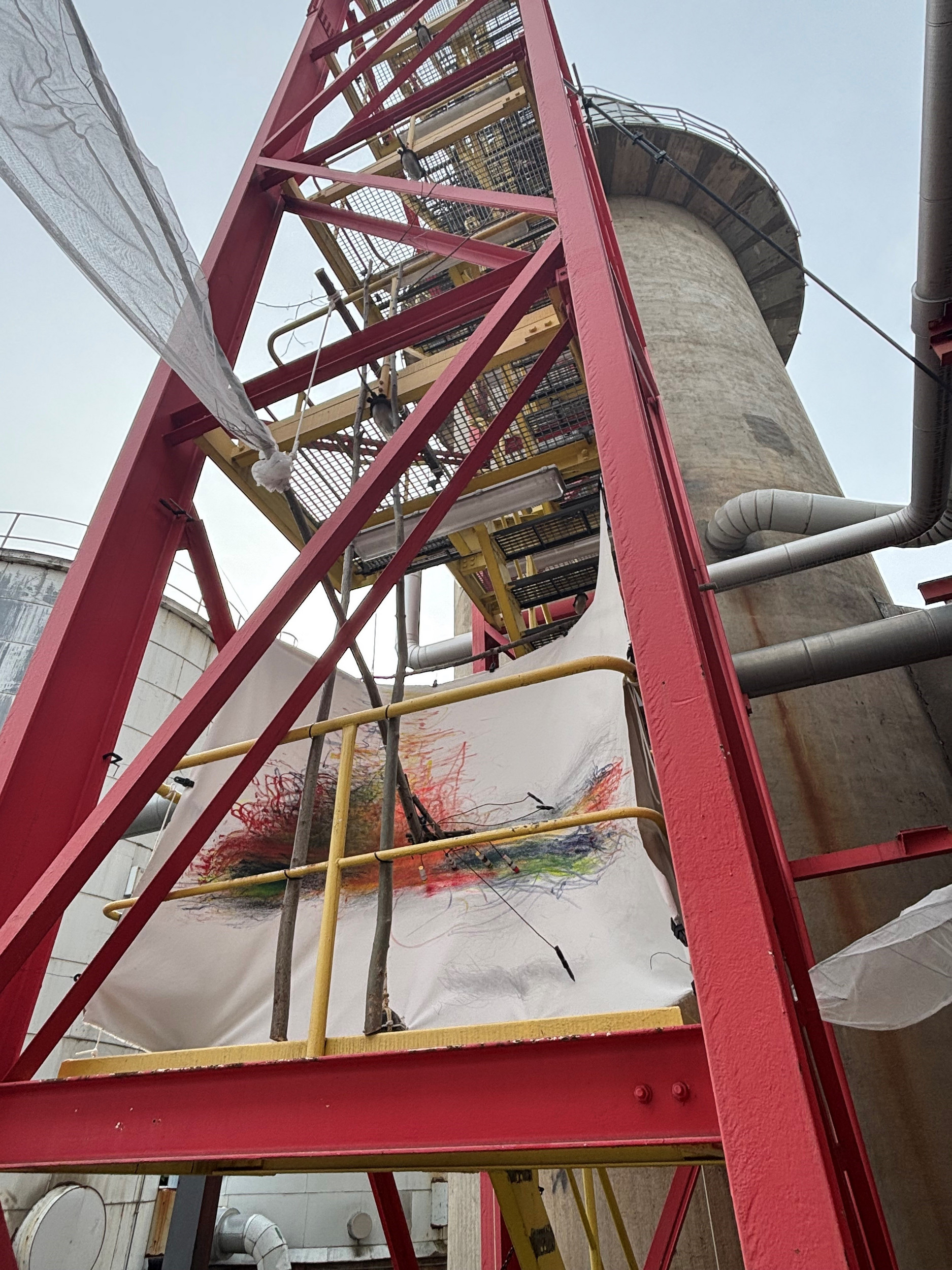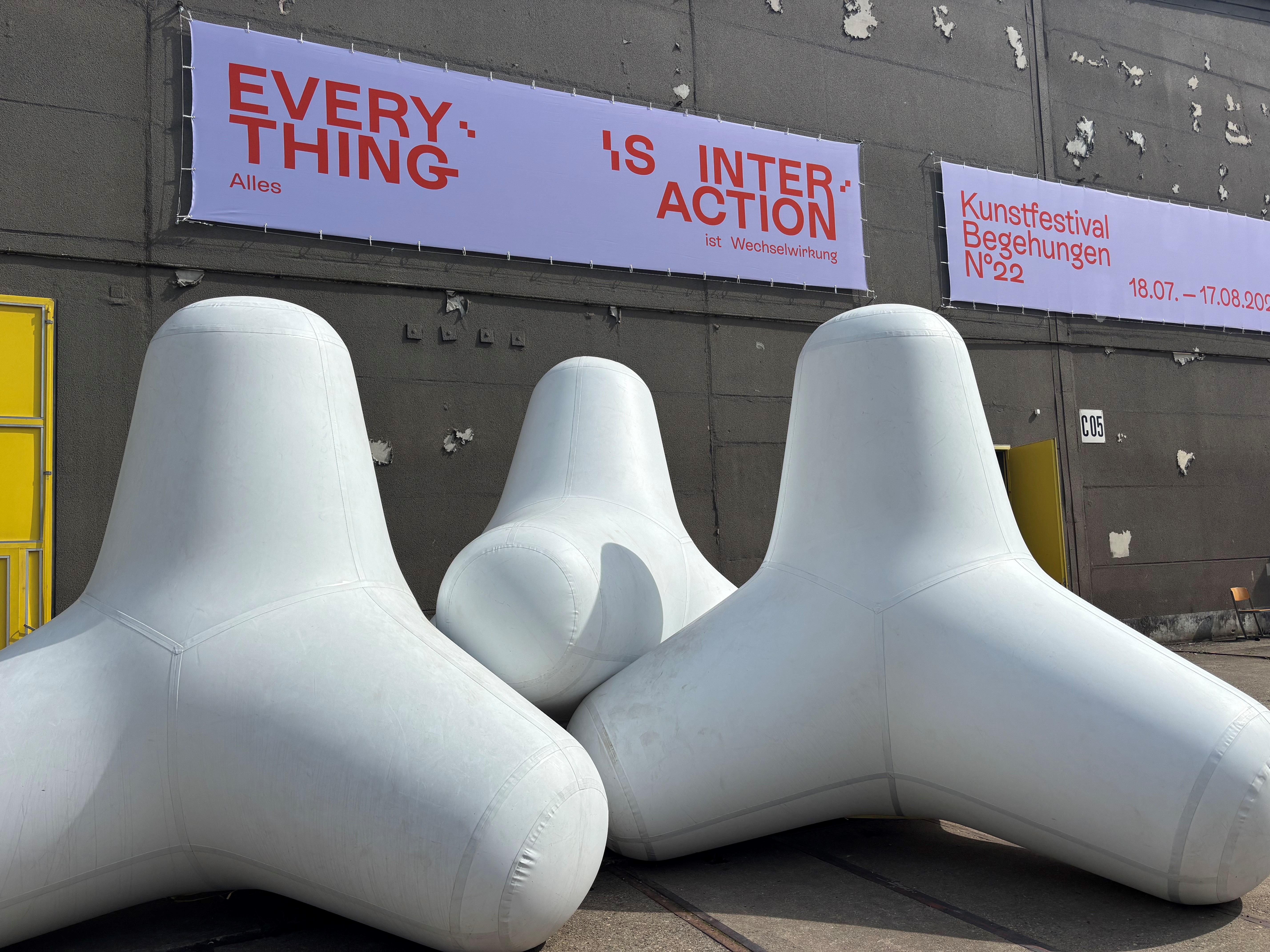 Das Kunstfestival „Begehungen“ ist nicht neu in Chemnitz, sondern bereits die 22. Ausgabe. In diesem Jahr, im Kulturhauptstadtjahr, aber besonders groß und an einem sehr bekannten und interessanten Ort der Stadt, im Heizkraftwerk Nord, zu finden. Am Fuße der bunten Esse, eines der Wahrzeichen von Chemnitz. Das Heizkraftwerk hat erst vor einem Jahr, nach dem Ende der Braunkohlenförderung, seinen Betrieb eingestellt. Ich war nicht nur auf die Ausstellungsstücke gespannt, sondern auch darauf, dieses in der Vergangenheit für die Außenwelt abgesperrte Gelände mit seinen riesigen Kühltürmen betreten zu dürfen.