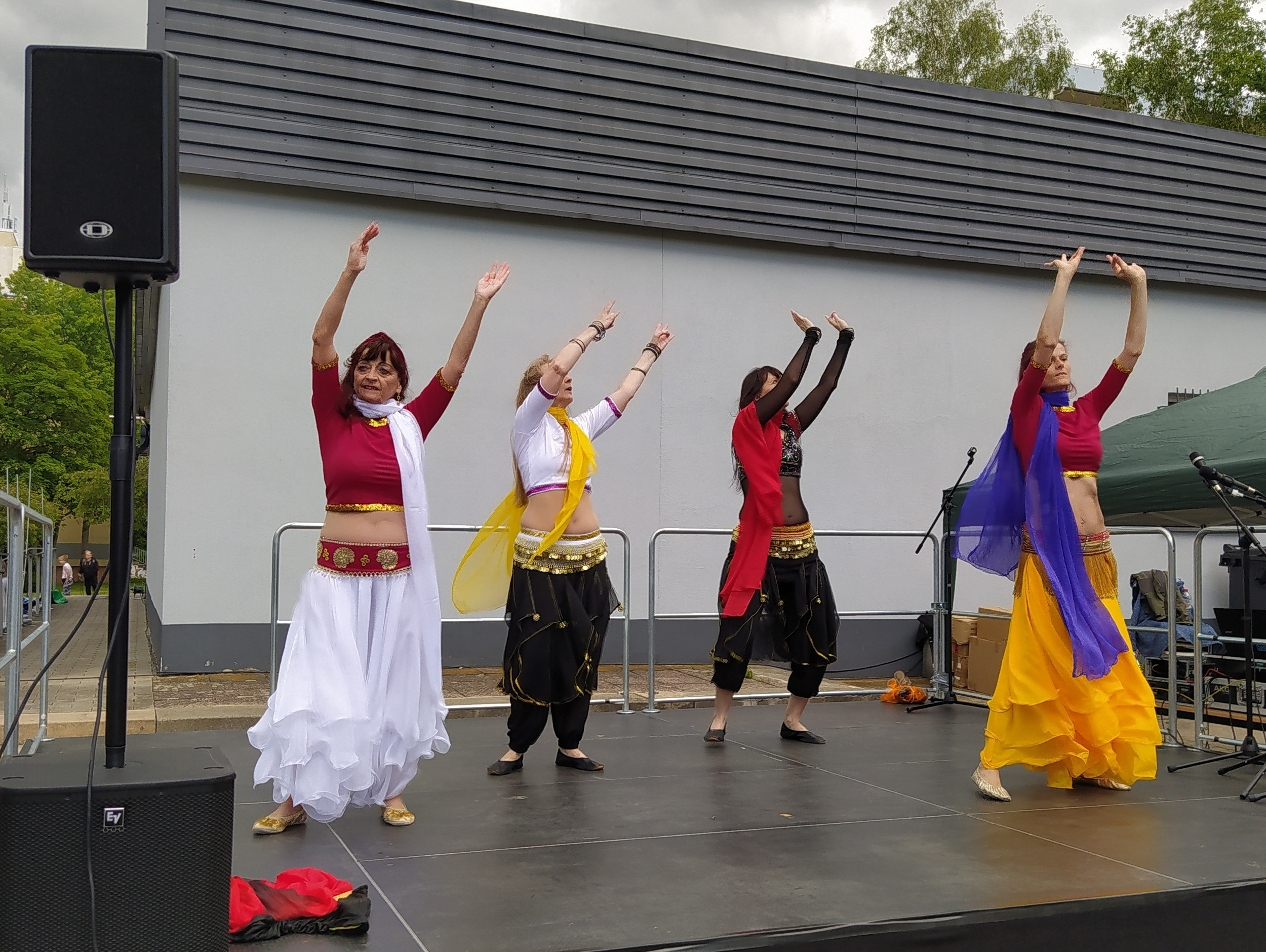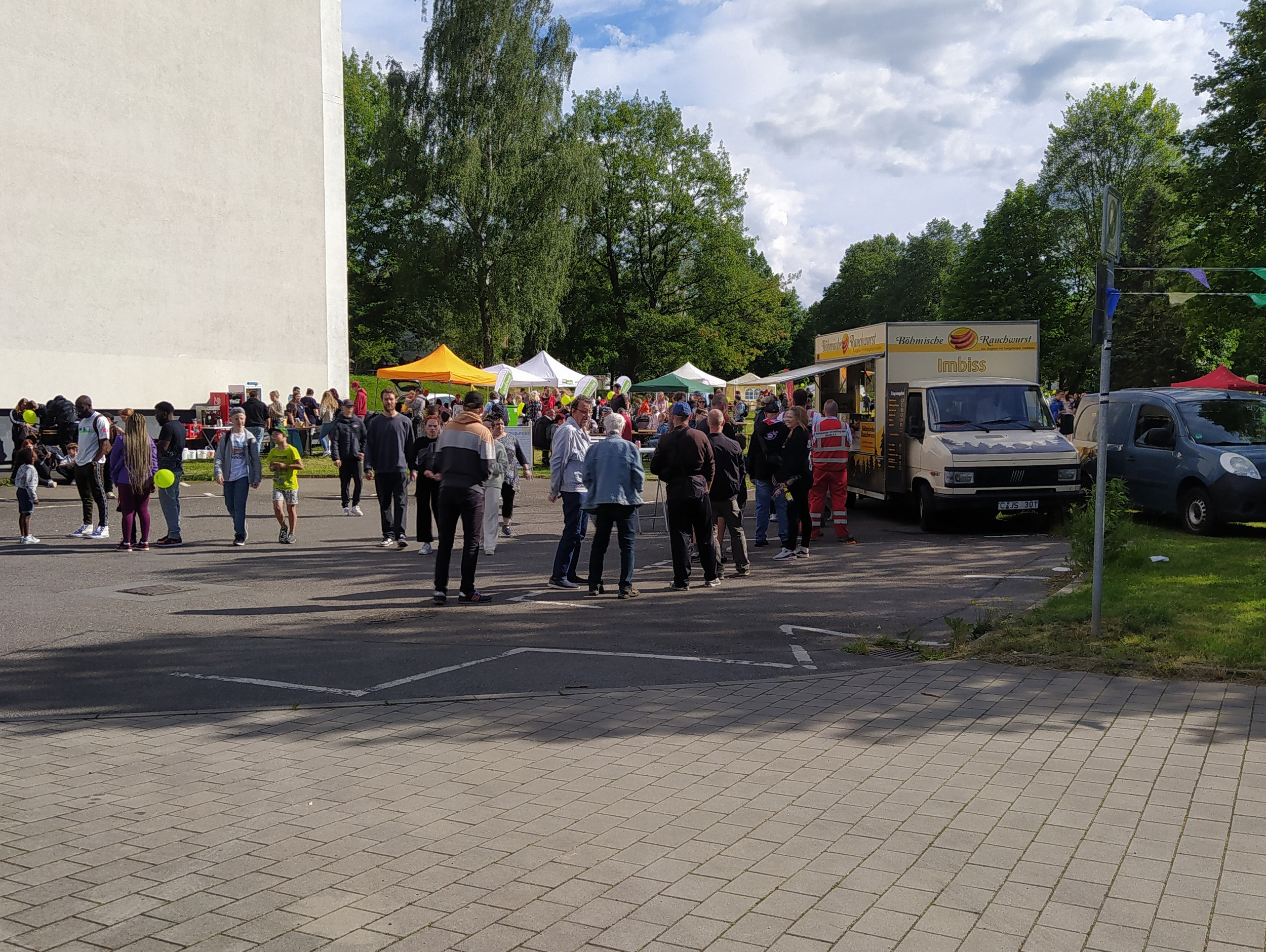 Den Festplatz inmitten der Straße Usti nad Labem sowie der Dr. Salvador-Allende-Straße hatte ich vorher bisher nicht gesehen. Die riesig anmutende Wiese wird von mehrgeschossigen Wohnblöcken umrahmt. Zusammen mit Bäumen, Parkbänken und Spielplätzen wirkt der Platz fast wie ein Park. Ideale Bedingungen also, um ein Fest zu organisieren.