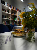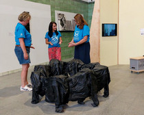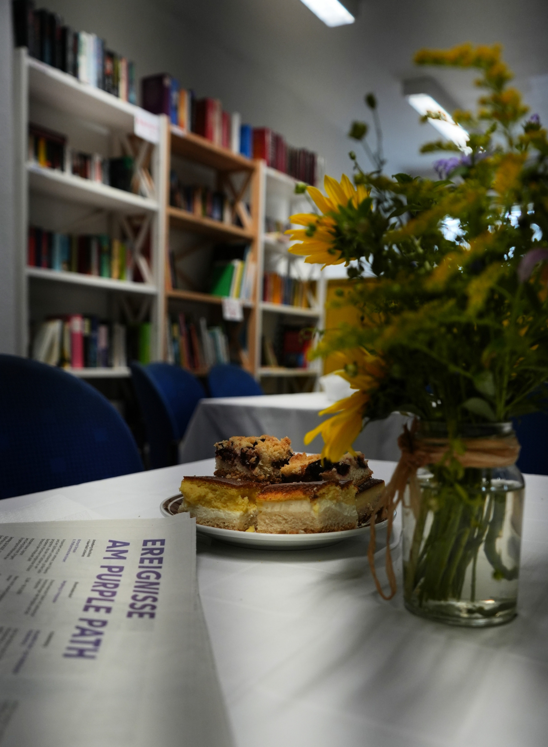 Seit Beginn der Ausstellung "Verstrickungen" sind wir dabei. Unsere Einsätze dauern vier bis sechs Stunden und beginnen immer mit festen Abläufen: Nach dem Anruf bei Holger (Holger ist der engagierte sympathische Mitarbeiter der Stadtverwaltung Flöha) öffnen sich die Türen. Wir schalten die Videoinstallationen ein und bereiten die Bewirtung für die Besucher vor.