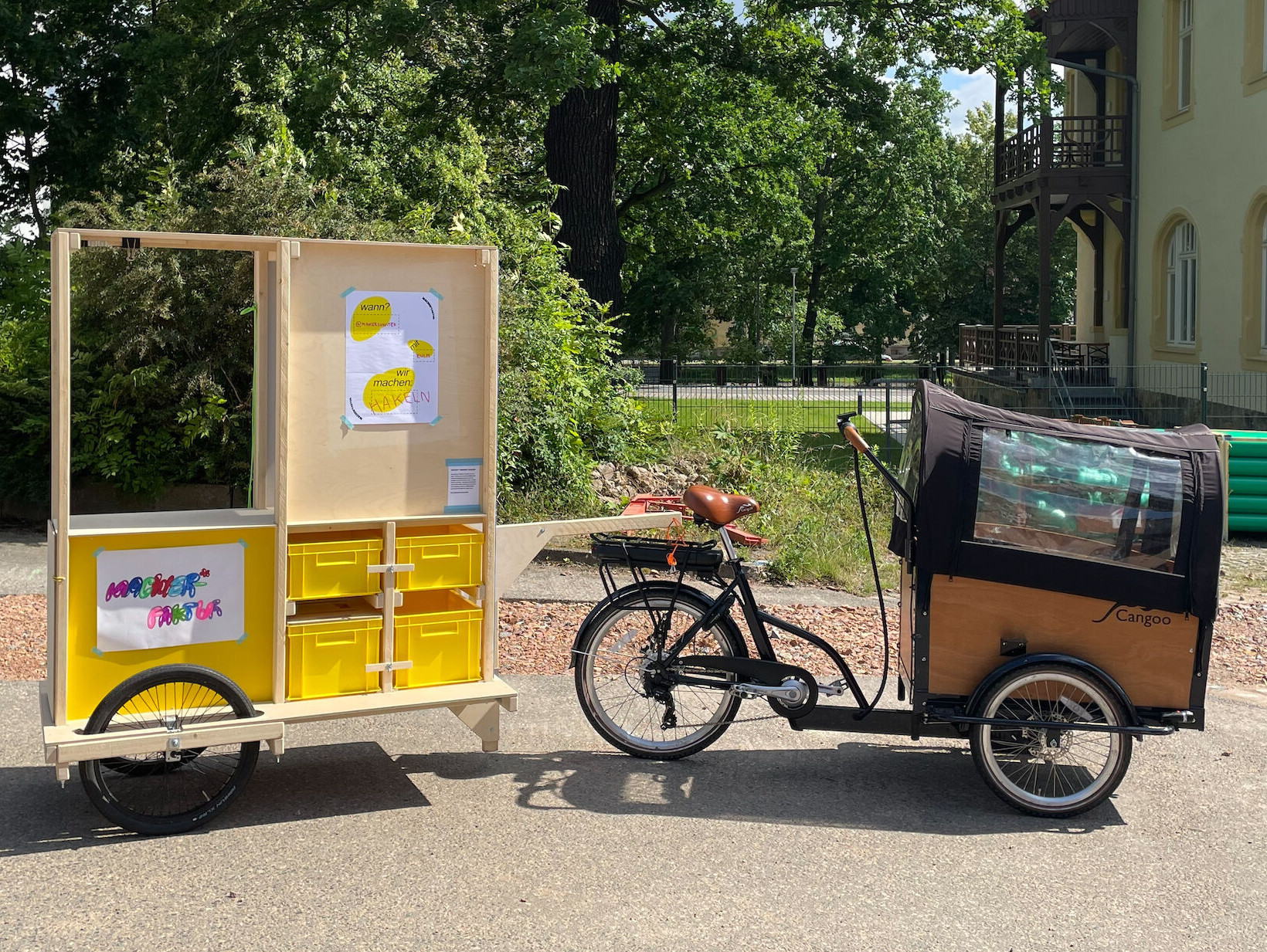 Was ist das Beteiligungsmobil? Das sogenannte Beteiligungsmobil, auch Macher*faktur genannt, wird im Rahmen der Kulturhauptstadt öfter zu sehen sein. Dahinter steckt ein mobiler Wagen, der an ein Fahrrad gekoppelt werden und womit man flexibel an verschiedene Orte fahren kann. Mithilfe des Workshop-Fahrradanhängers können sich Jung und Alt an nahezu jedem Ort treffen, gemeinsam lernen, spielen und austauschen. Im folgenden Video wird das Projekt noch ausführlicher vorgestellt.