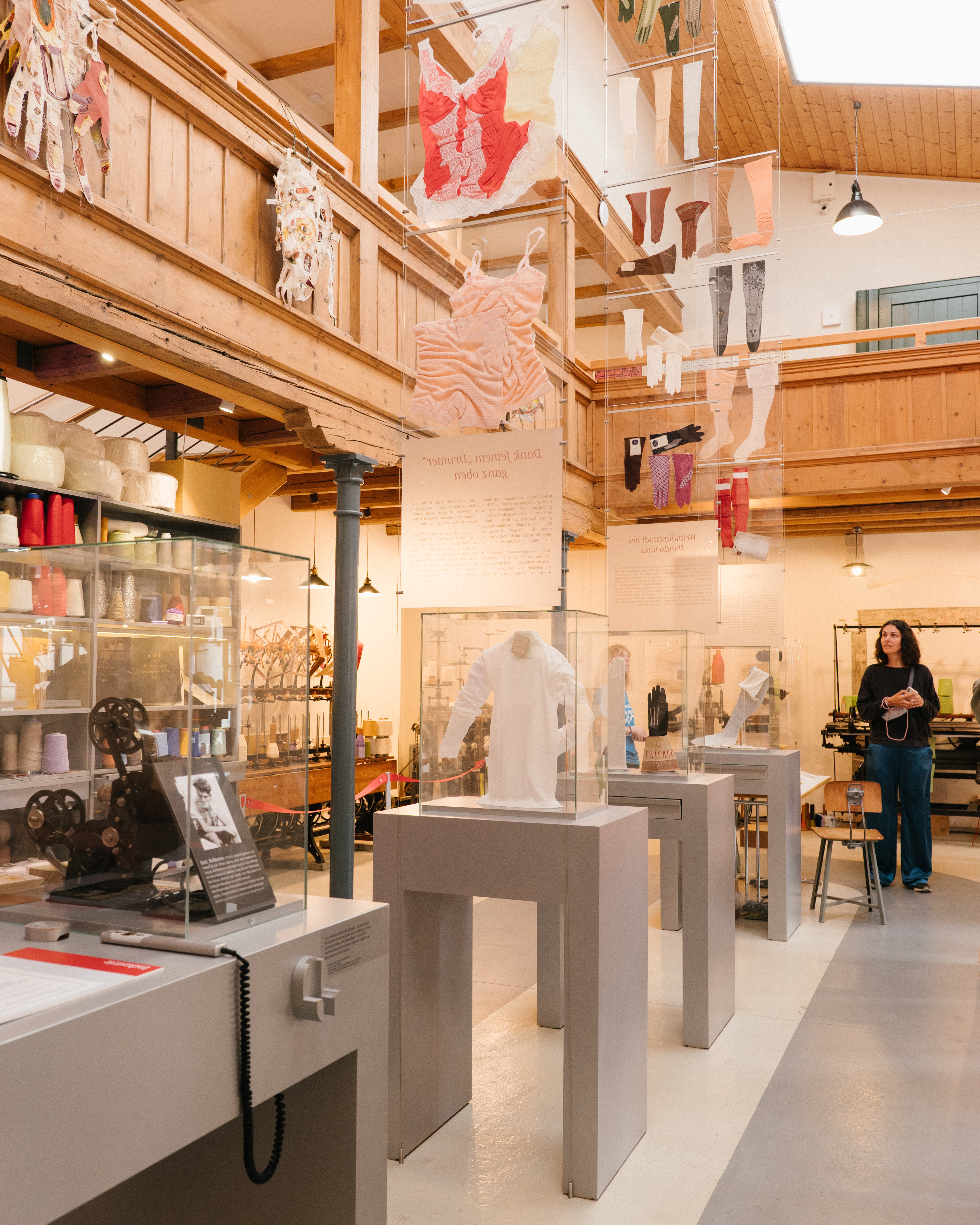 Ein Wochenende im Zeichen der Masche: Beim LOOP!-Strickfestival im Esche-Museum Limbach-Oberfrohna drehte sich alles um Stricken, nachhaltige Textilien und kreative Technologien. Der Auftakt am Freitagabend stand ganz im Zeichen von Licht, Kunst und Musik. Die Künstlerin Wiete Sommer eröffnete das Festival mit ihrer Performance Spiegelung. Spektralfarbene Körperbilder. Licht- und Klanginstallationen verwandelten das Museum bis in den späten Abend in einen atmosphärischen Erlebnisraum.