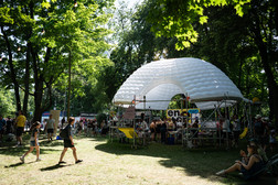 Der KOSMOS Chemnitz ist mehr als ein Musikfestival: Gesellschaftlicher Dialog, Teilhabe und demokratische Beteiligung stehen ebenso im Mittelpunkt. In Mitmachangeboten konnten Besucher:innen sticken, tanzen, siebdrucken, bauen, gestalten, lernen und Neues ausprobieren. Ergänzt wurde das Programm um Kunstinstallationen, sportliche Wettbewerbe sowie Gesprächsformate zu Themen wie Zukunftsperspektiven, ehrenamtlichen Engagement, Soziale Medien oder psychische Gesundheit.