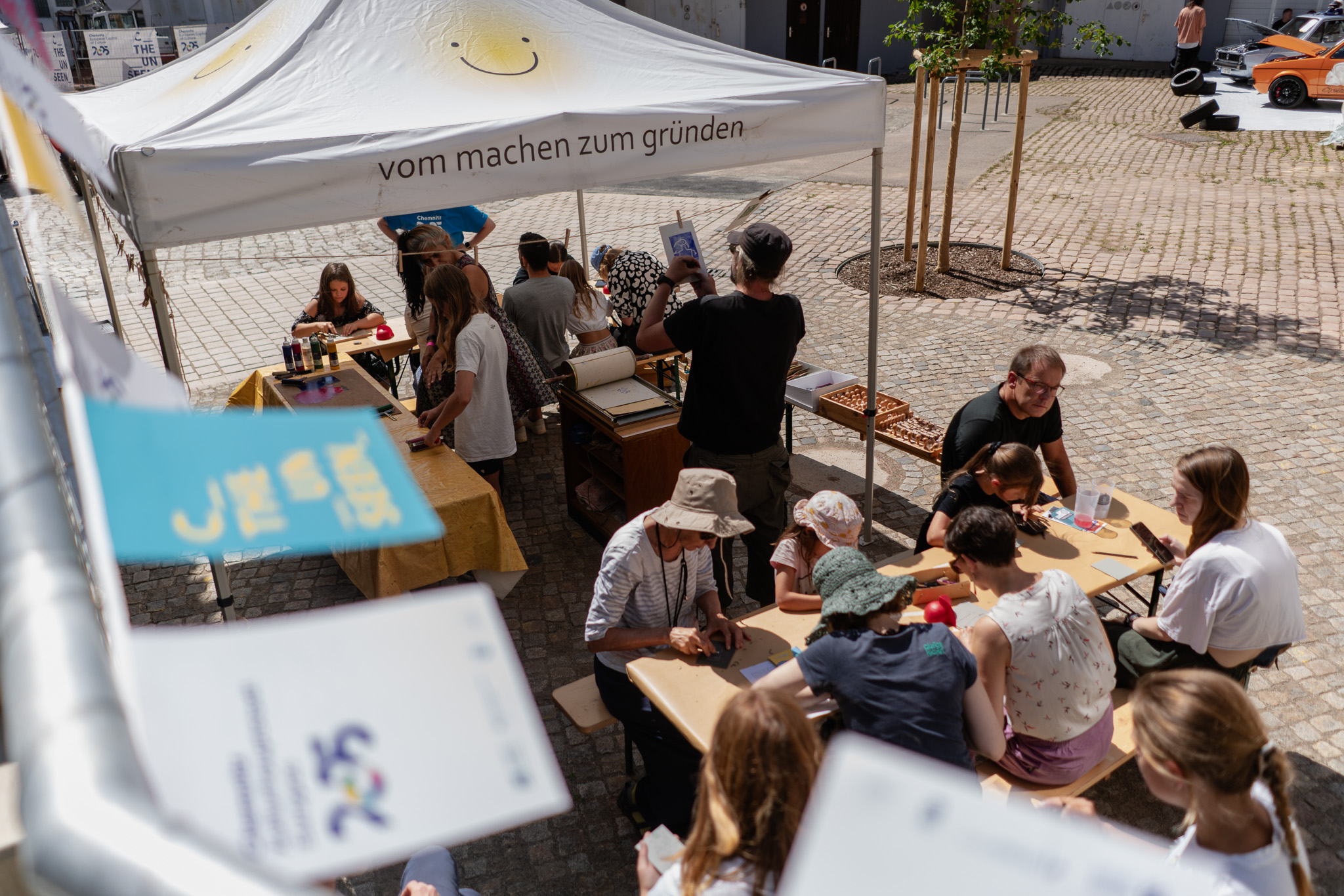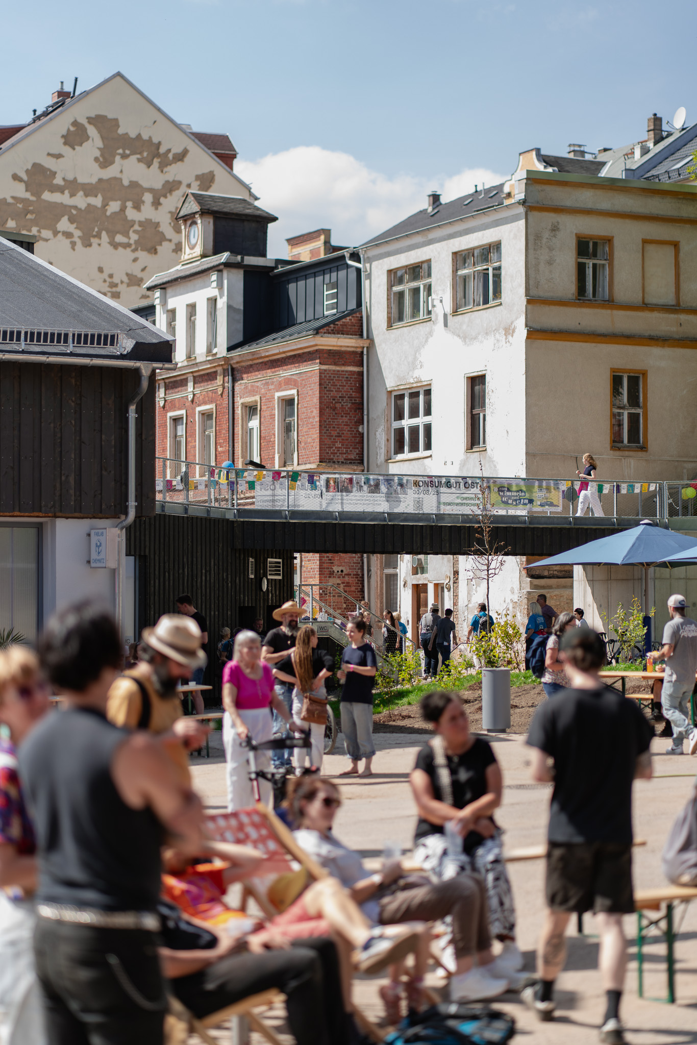 Über 100 Jahre nach dem Bau der Stadtwirtschaft Chemnitz rotieren nicht mehr die Kehrmaschinen, sondern kreative Köpfe und neue Ideen auf dem Gelände. Auf einer der größten Entwicklungsflächen der Kulturhauptstadt bringen Vereine, Initiativen, Maker und Engagierte den Stadtteil Sonnenberg und die dortigen Aktiven zum Strahlen. Kooperativ entstand ein Programm direkt aus dem Herzen der neu wachsenden Hofgemeinschaft. Es war eine Einladung, in den neuen Hofkosmos und den Stadtteil Sonnenberg einzutauchen.